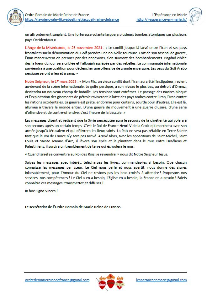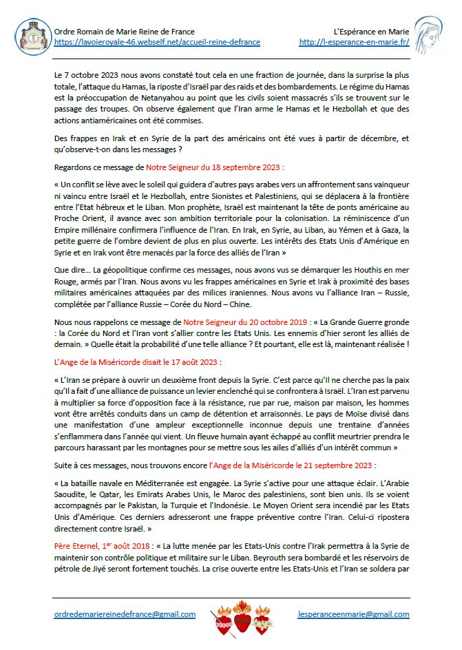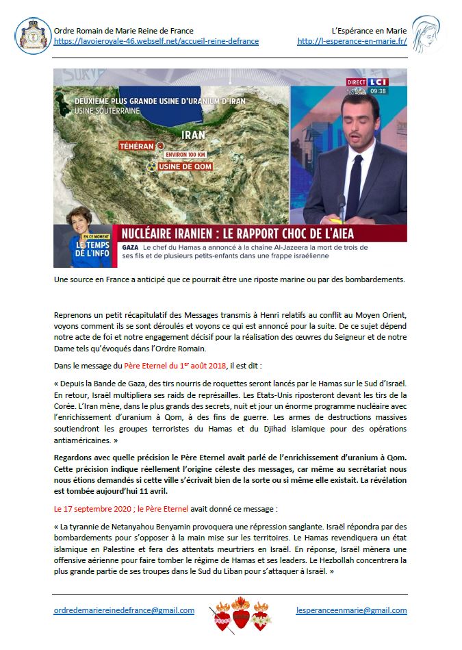 Communiqués de l’Espérance en Marie