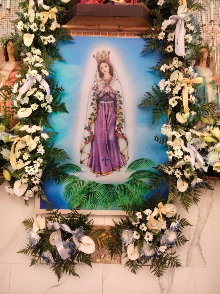 Toutes les fleurs de ses 35 années sont à la Glorieuse Vierge Marie. Depuis le 07 Mars 1990 avec un titre qui console la terre et qui réjouit les Cieux, et un parfum plus doux que l’odeur de la myrrhe Notre Mère chérie, La Madone de la Réparation Comme une Rose Eblouissante continue de donner à l’aube de nos jours ses couleurs d’éternité.